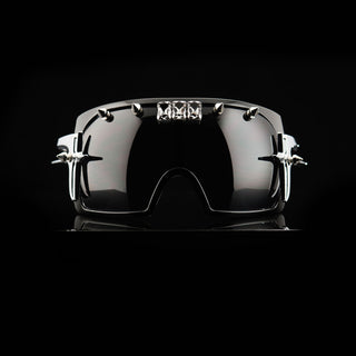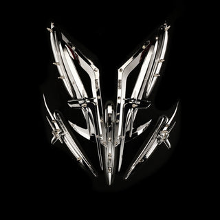 A reflective chrome-silver neckpiece, embodying futuristic elegance and custom laser metal parts , finished with a layer of pure platinum.