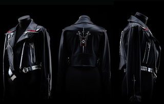 Sleekly designed lines and countless details in strategic places form a nice balance with the cool, futuristic materials. The streamlined helmet is a good example of this: A base created in black, with a high gloss finish and trimmed with red crystals. It is a real showstopper. Create the perfect iconic look with the signature corset and the cool biker jacket, ready to make a statement on an international stage, event or red carpet. Bjorn has decided not to shoot a campaign for this collection. “I wanted the creations to speak for themselves”, he explains. “This collection could also be described as wearable art, it contains several one of a kind items, which are true collectables