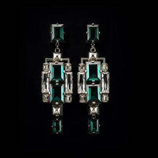With the authentic glamour of old Hollywood and the Royal Crown jewels as an inspiration, designer Bjorn van den Berg translated silver platinum combined with clear crystals and emerald green...high-lights into an exclusive range of jewelry with influences from the art nouveau and art deco eras.