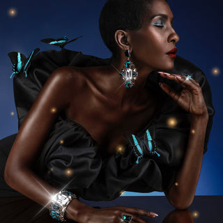 Every detail in this collection is designed to captivate. From the shimmering brilliance of the crystals to the regal undertones of the gold, each piece exudes exclusivity and refinement. Butterflies, symbolizing transformation and grace, are brought to life through cinematic effects, creating a dynamic, otherworldly atmosphere.